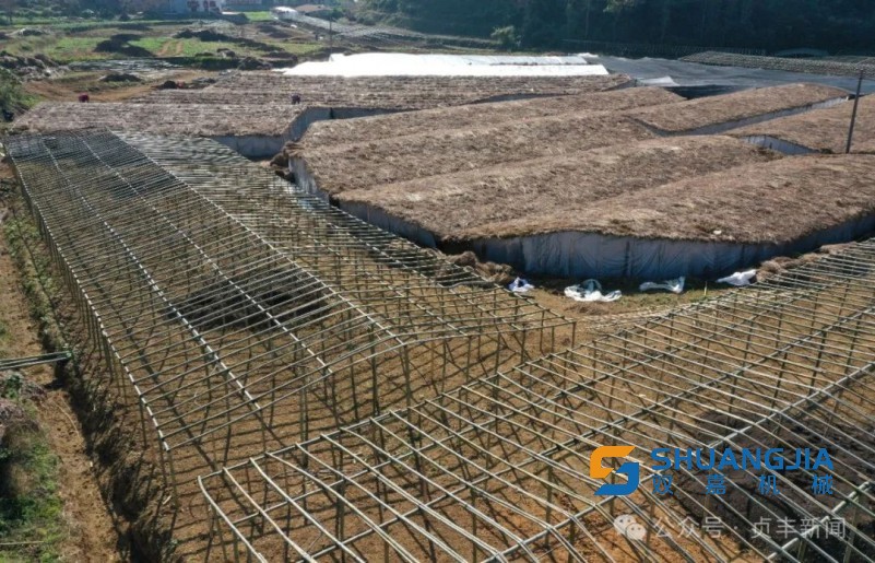 竹荪种植大户翁广德介绍,在五里岗村流转土地200多亩种植红托竹荪,带动当地10户大户参与种植,目前正在建设竹荪种植大棚,预计明年五月份开始采收。